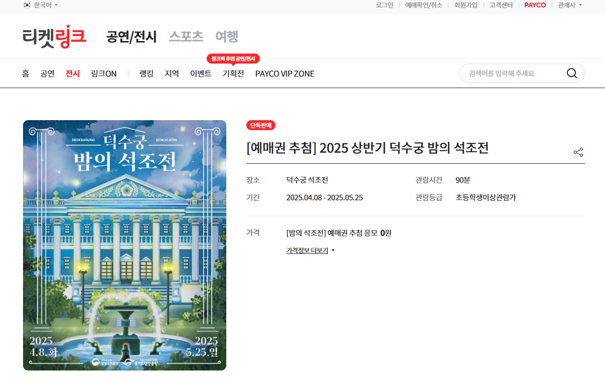✔️ 잔여석 예매 마감 : 관람일 당일 오전 10시까지